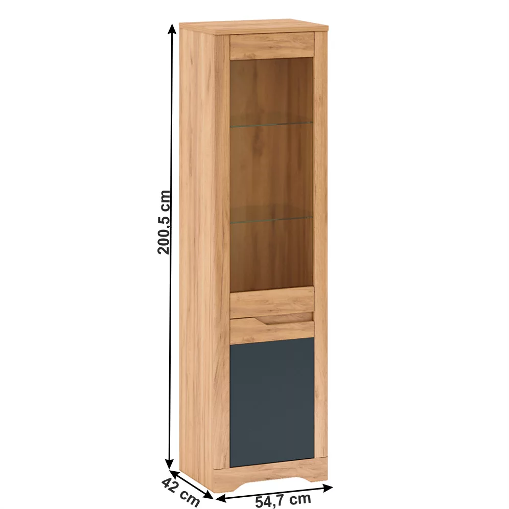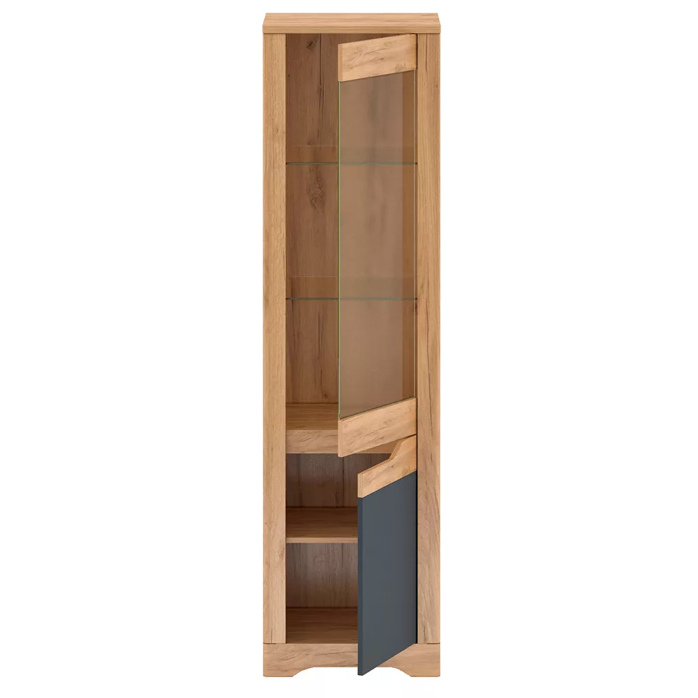 Az otthonod kialakítása során gyakran merül fel a kérdés: hogyan teremthetsz egyszerre rendezett, mégis egyedi és modern hangulatot? A FIDEL bútorkollekció pontosan erre a kihívásra ad választ, különösen ez a stílusos üveges szekrény. A craft arany tölgy meleg, természetes textúrája és a grafit szürke hűvös eleganciája tökéletes kontrasztot alkot, melyet a minőségi laminált DTD és fóliázott MDF alapanyagok tesznek időtállóvá.