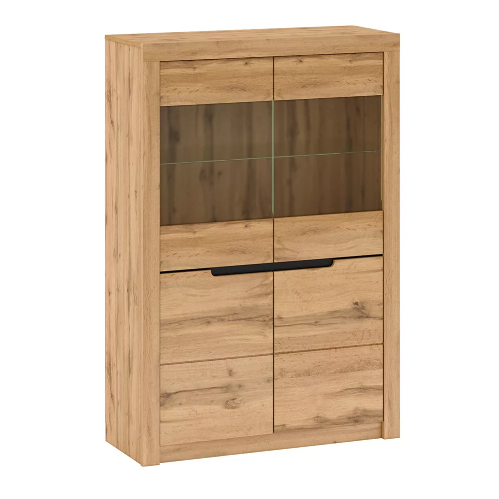 A négyajtós kialakítás bőséges tárolóhelyet kínál. Az üvegezett részek ideálisak arra, hogy legszebb dísztárgyaidat, pohárkészletedet vagy emlékeidet helyezd el benne, így ez a bútor egyszerre funkcionál mint elegáns pohárszék és praktikus edényszekrény. A belső polcok segítségével a rendszerezés egyszerű és átlátható, legyen szó akár étkészletről, könyvekről vagy egyéb személyes tárgyakról. Ez a multifunkcionális darab tökéletesen megállja a helyét mint modern kredenc vagy akár stílusos büfé is.