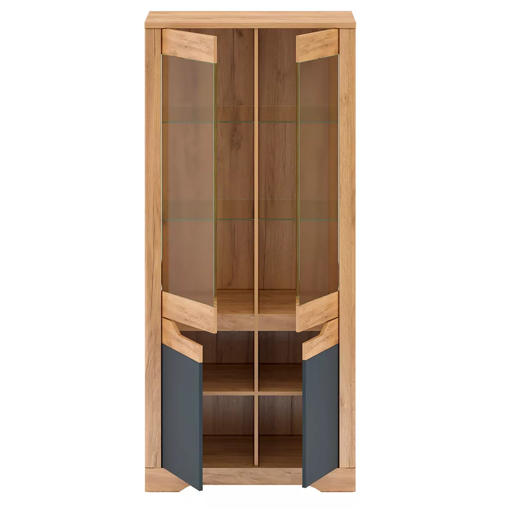 Egy letisztult, harmonikus otthon megteremtésekor kulcsfontosságú a tárolás és a stílusos bemutatás finom egyensúlya. A FIDEL üveges szekrény ebben nyújt szakértő segítséget, amely a craft arany tölgy melegségét ötvözi a grafit szürke modern eleganciájával. A minőségi, laminált DTD-ből készült korpusz és a fóliázott MDF ajtók tartós és esztétikus megoldást kínálnak azok számára, akik a rendezettséget és az egyedi hangulatot keresik.