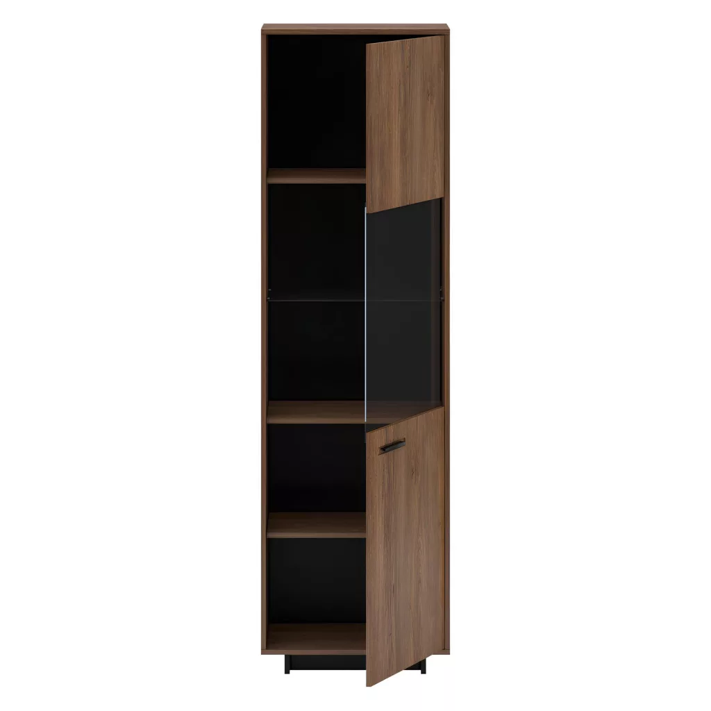 Ez a bútordarab tökéletesen funkcionálhat mint elegáns pohárszék, ahol a legszebb üvegpoharaidat tárolod, vagy mint modern tálaló, amely az étkező dísze lehet. Az üveges ajtóknak köszönhetően ideális kiállító szekrény is, ahol a számodra kedves dísztárgyak, családi ereklyék vagy egyedi porcelánok kaphatnak helyet, így egyben kifinomult porcelán szekrény szerepét is betöltheti. A bolzano tölgy meleg, természetes árnyalata és egyedi farajza gyönyörű kontrasztot alkot a talapzat és a fém fogantyúk fekete színével, ami ipari, mégis otthonos hangulatot teremt. A DELIS nem csupán egy bútor, hanem egy karakteres elem, amely a hagyományos és a modern enteriőrökben egyaránt megállja a helyét.