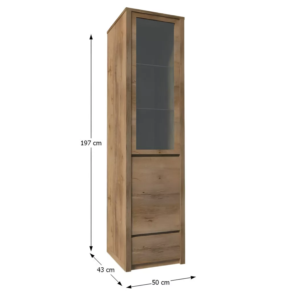 A minőségi DTD laminált alapanyag és a strapabíró ABS élek garantálják, hogy ez a bútor hosszú távon is megőrzi kifogástalan megjelenését és stabilitását. A 15 mm-es anyagvastagság masszív, megbízható szerkezetet biztosít, így bátran rá-, illetve belehelyezheted értékes porcelánjaidat vagy kristálypoharaidat. Kompakt, 50 cm-es szélességével kisebb terekben is könnyedén elhelyezhető, a 197 cm-es magassága pedig optimális helykihasználást tesz lehetővé anélkül, hogy túlságosan uralná a teret.