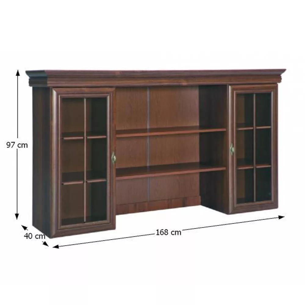 Ez a gyönyörű **tálaló** két elegáns üvegajtóval rendelkezik, melyek mögött két polc kínál bőséges helyet legféltettebb kincseid számára. Ideális választás, mint **pohárszék** az étkezőben, vagy mint **kiállító szekrény** a nappaliban, ahol a családi porcelán vagy a gyűjteményed legszebb darabjai kaphatnak méltó helyet. A masszív, 22 mm vastagságú felső és alsó lapok, valamint a stabil, 15 mm-es váz garantálják a stabilitást és az időtállóságot.