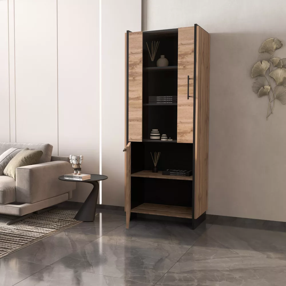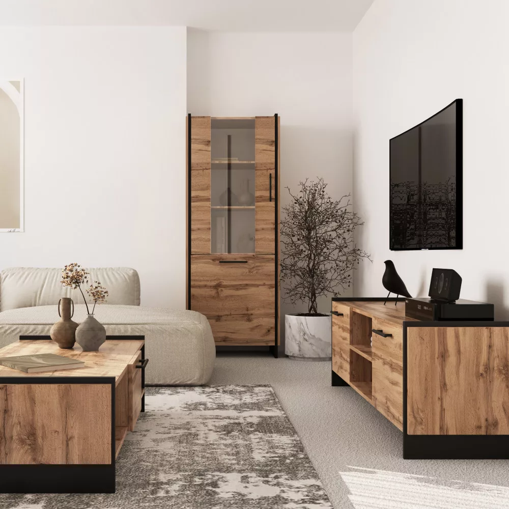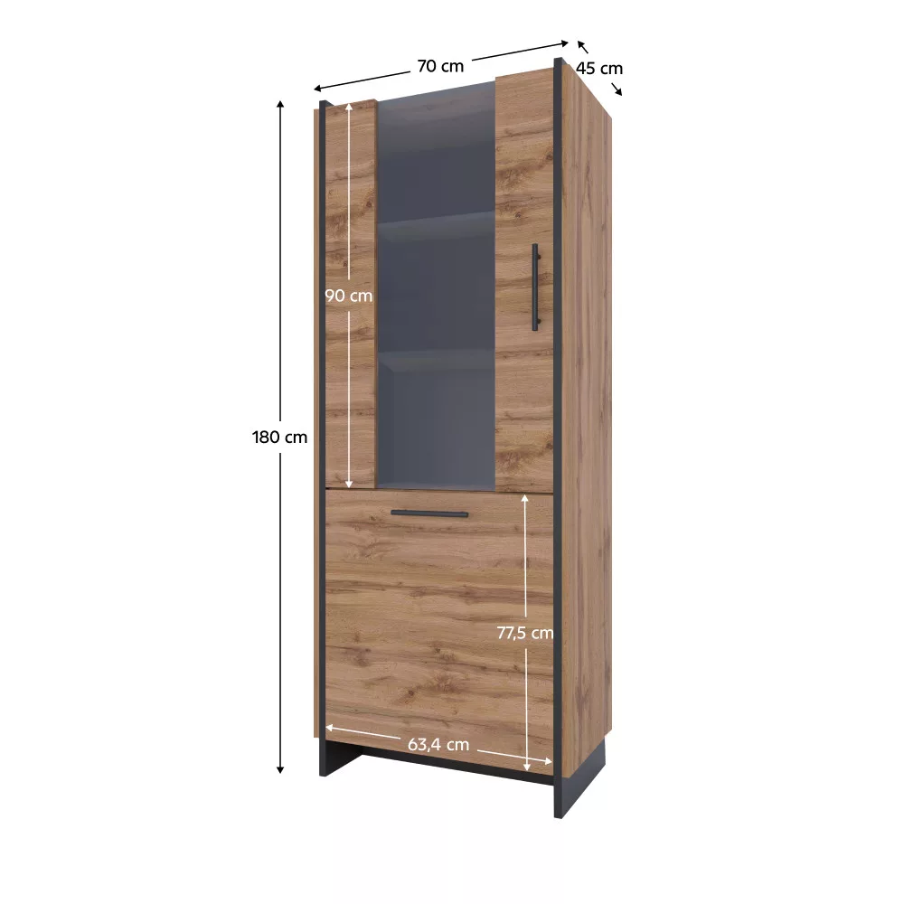 Egy otthon harmóniájához elengedhetetlen a rend és a stílusos tárolás. Az AMONI szektoros rendszer üveges szekrénye tökéletes választás, ha egyensúlyt keresel a modern dizájn és a praktikus funkcionalitás között. A wotan tölgy meleg, természetes hatását elegánsan egészíti ki a fekete szín, amely egyedi karaktert és kifinomult eleganciát ad bármely helyiségnek.