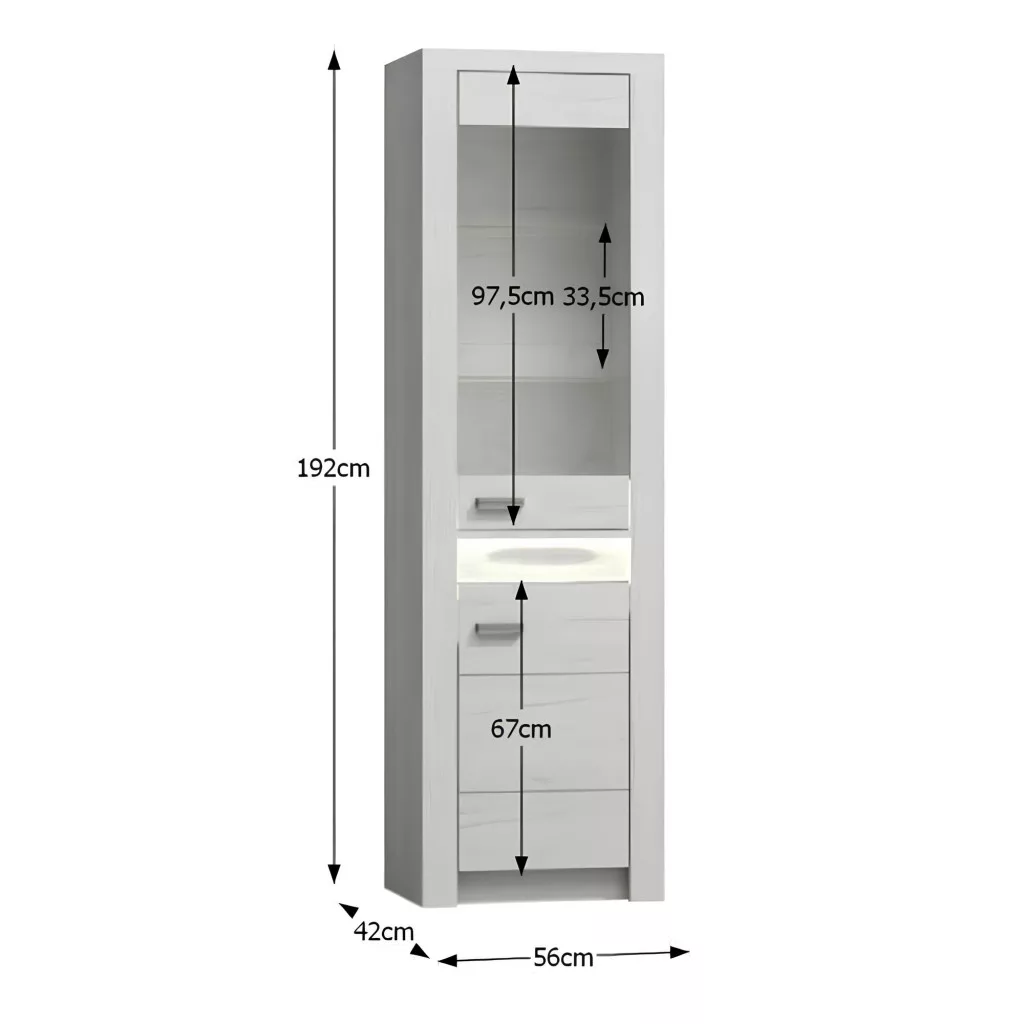 Gondolkodtál már azon, hogyan tehetnéd igazán egyedivé az étkeződet vagy a nappalidat? Ez az elegáns üveges szekrény tökéletes helyet biztosít a legszebb emlékeidnek, kedvenc könyveidnek vagy az örökölt porcelán szekrény tartalmának. Használd exkluzív pohárszékként a legféltettebb kristályaid számára, vagy rendezz be benne egy kis házi galériát. Az INFINITY vitrin nem csupán egy bútor, hanem egy lehetőség arra, hogy megmutasd a stílusodat, és olyan otthont teremts, amely valóban rólad szól.
