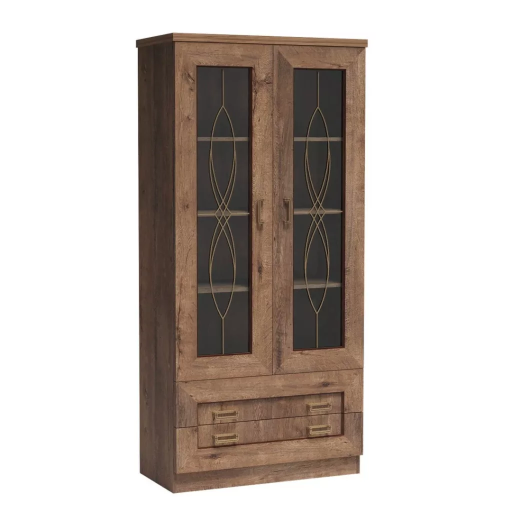 A praktikus belső kialakítás lehetővé teszi, hogy rendszerezetten tárold értékeidet. A két üveges ajtó mögött három polc négy tágas rakodóteret hoz létre, így tökéletes helyet biztosít, mint elegáns pohárszék az étkezőben, vagy mint porcelán szekrény, ahol a legszebb étkészleteid kapnak helyet. Az alsó részben található két mély fiók további rejtett tárolási lehetőséget kínál. A TEDY vitrin több mint egy bútordarab; egy olyan befektetés, amely otthonod karakterét és melegségét emeli ki.
