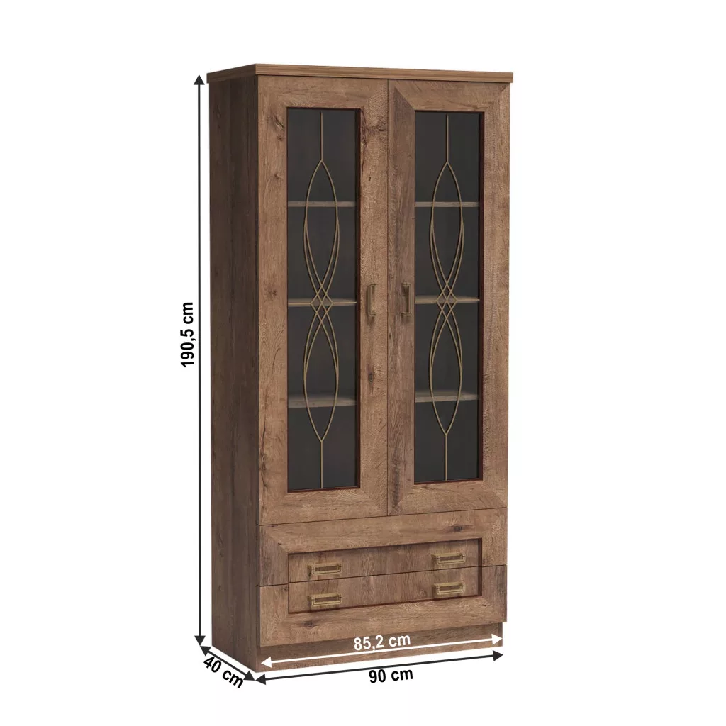 Olyan otthonról álmodsz, amelynek saját története és összetéveszthetetlen személyisége van? A TEDY T8 vitrinszekrény a klasszikus, rusztikus dizájn esszenciáját hozza el otthonodba, luxus atmoszférát teremtve. A gyönyörű lefkas tölgy színvilágú, közkedvelt laminált DTD bútorlapból készült üveges szekrény nemcsak tárolóhely, hanem a személyiségedet tükröző kiállító szekrény is. A tartósságot a legmodernebb élzárási módszernek számító ABS élek és a fóliázott MDF díszlécek garantálják.