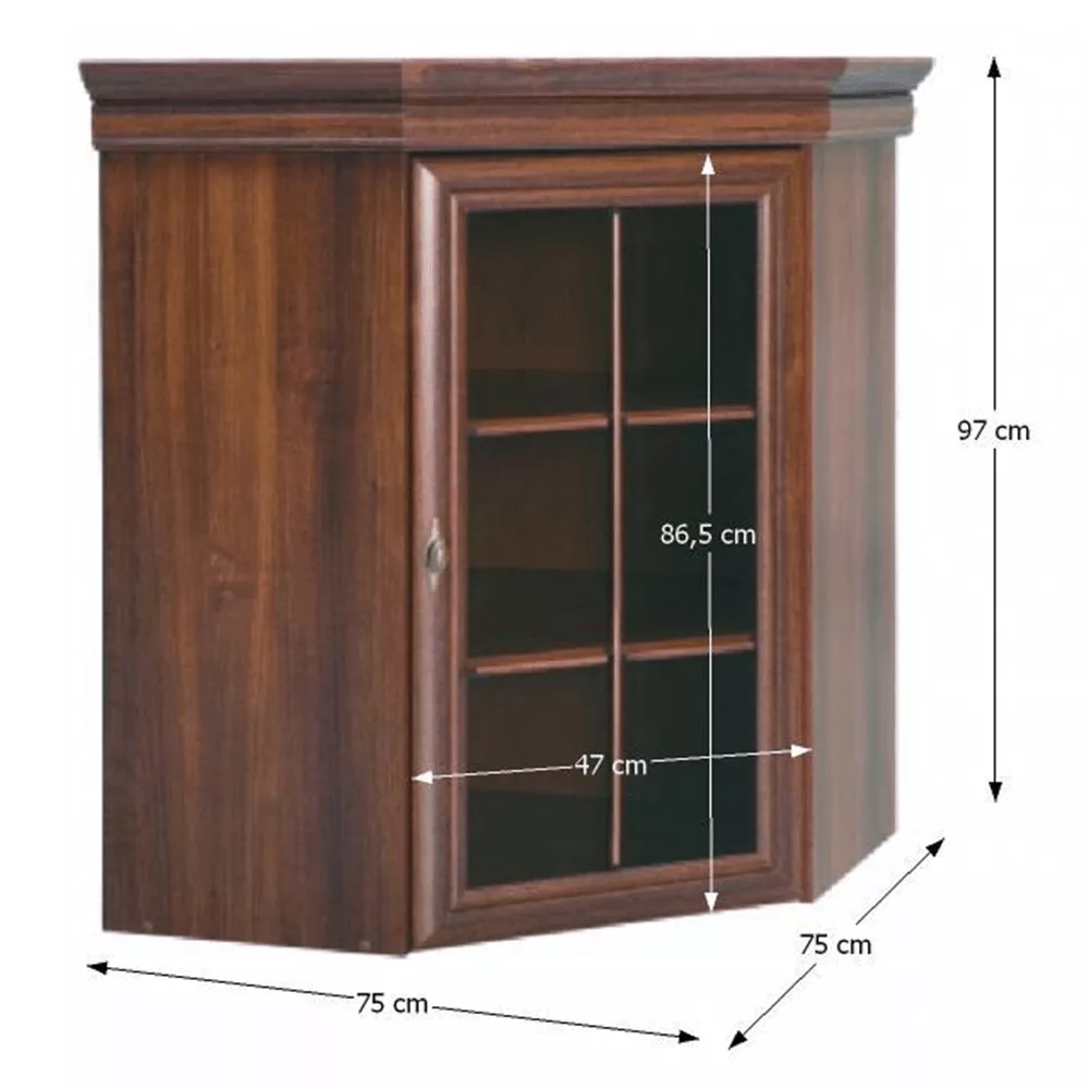Gyakran a sarkok kihasználatlanul maradnak, pedig egy jól megválasztott bútordarabbal otthona legértékesebb pontjává válhatnak. A KORA KNN1 sarokvitrin egy klasszikus, rusztikus stílusú kiállító szekrény, amely minőségi laminált DTD anyagból, elegáns samoa king színben készült, hogy a régmúlt idők nyugodt, harmonikus atmoszféráját hozza el az Ön számára.