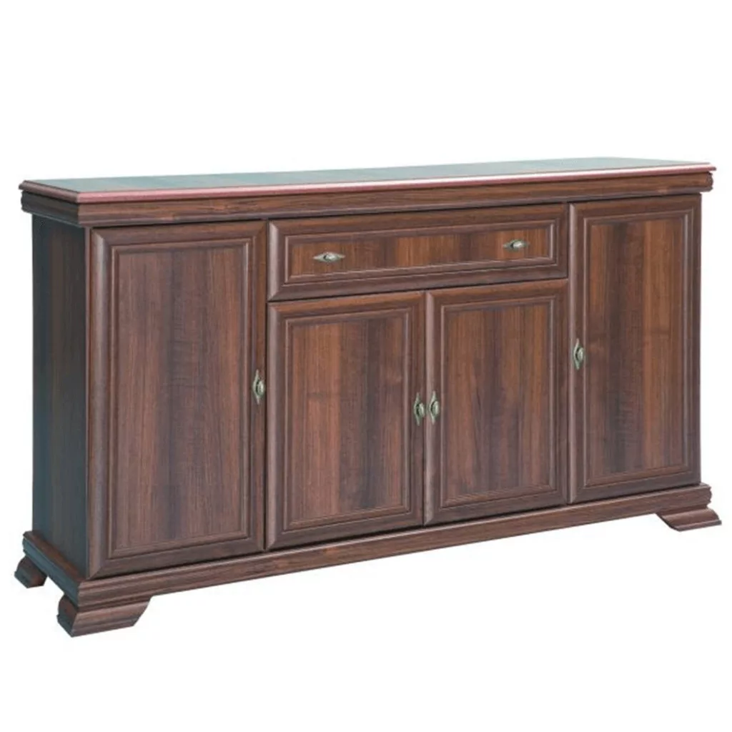 A KORA KK4 komód alapos részleteivel és tökéletes kidolgozásával hamar a szívedbe lopja magát. A négy ajtó mögötti polcos részek, valamint a tágas központi fiók bőséges tárolóhelyet biztosítanak. Akár ruhás komódként, akár iratok és egyéb tárgyak elhelyezésére szolgáló bútorként funkcionál, a rendszerezés sosem volt még ilyen elegáns. A masszív szerkezetet a finoman kidolgozott MDF díszlécek és a klasszikus fém fogantyúk teszik teljessé, melyek kiemelik a bútor nemes karakterét.