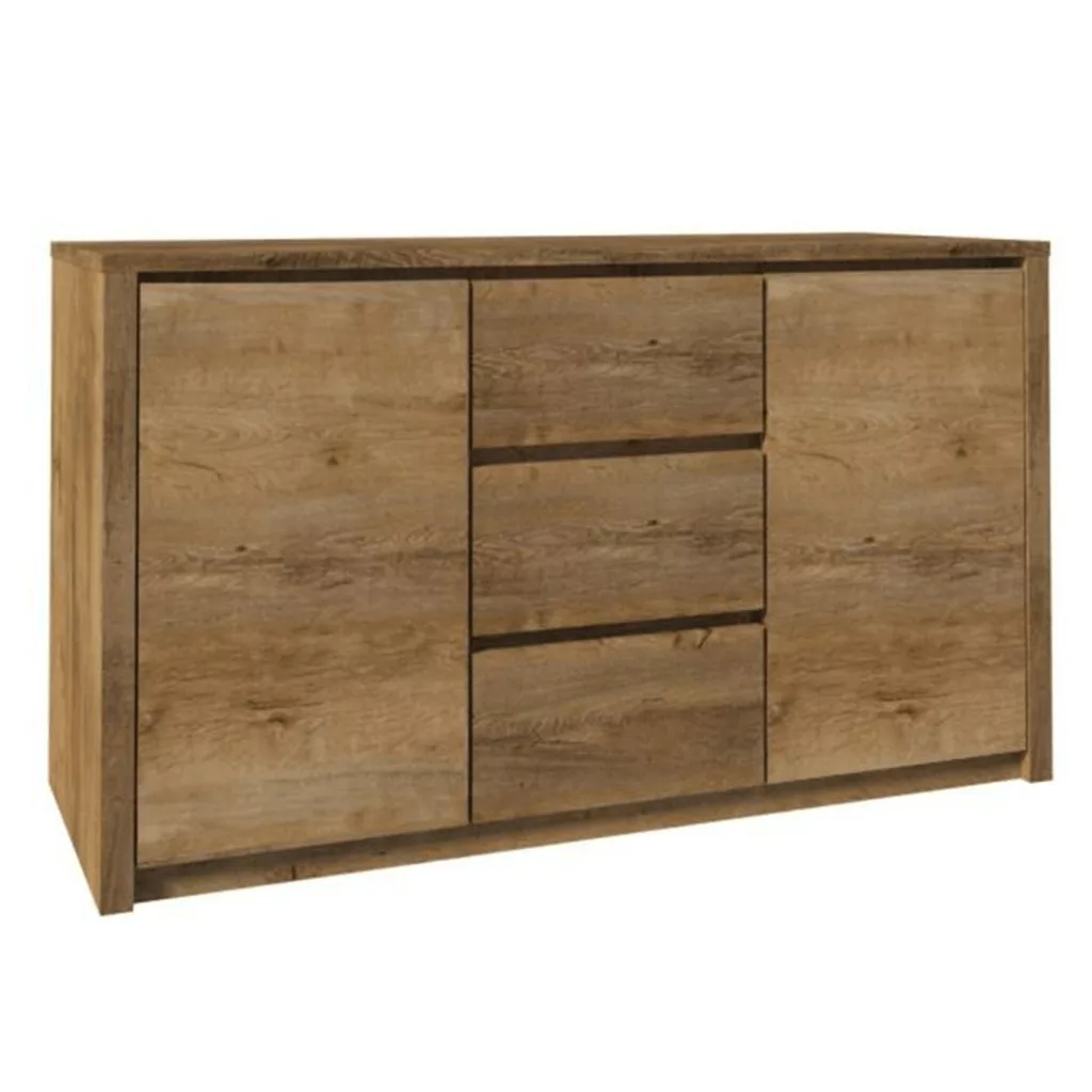 A minőséget és a tartósságot a gondos anyagválasztás garantálja. A bútor váza strapabíró, laminált DTD lapokból készül, melyek ellenállnak a mindennapi használatnak. Az ABS élek pedig hatékony védelmet nyújtanak a mechanikai sérülésekkel és a nedvességgel szemben, így biztosítva a komód hosszú élettartamát.