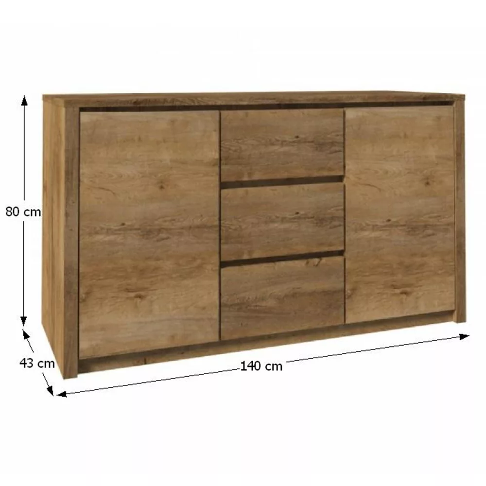 Ez a különleges darab a MONTANA elemes bútorcsalád része, melyet a természetesség és a letisztult elegancia jellemez. A sötét lefkas tölgy színváltozat melegségével és a fa élethű mintázatával azonnal otthonosságot és jókedvet sugároz, legyen szó a nappaliról, étkezőről, hálószobáról vagy akár a dolgozószobáról. Modern, fogantyú nélküli dizájnja letisztultságot visz a térbe, miközben rendkívül praktikus tárolási megoldást kínál. A tágas két szekrény és a három fiók bőséges helyet biztosít a ruháknak, dokumentumoknak vagy bármilyen személyes tárgynak, így ideális választás mint ruhás komód vagy általános tároló szekrény.