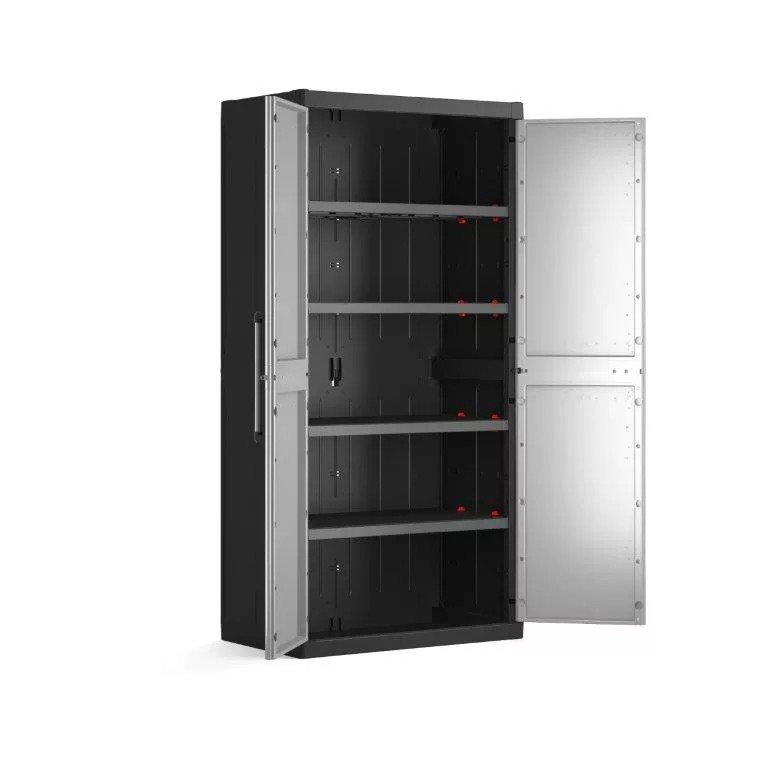 Használd garázsodban, kerti házadban, fürdőszobában vagy otthonod bármely pontján. A tároló szekrények használhatók kül- és beltéren egyaránt. A termékcsalád elemei egymással kompatibilisek, szekrénysorrá alakíthatók.