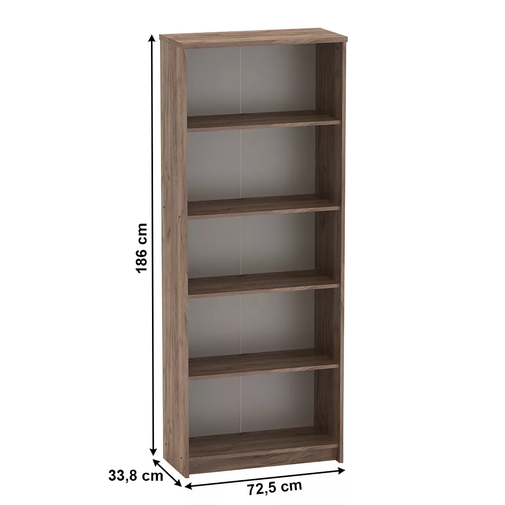 Ez a nyitott polcos elem ideális választás mindazok számára, akik egy funkcionális és esztétikus könyvtároló megoldást keresnek. A négy tágas polc bőséges helyet kínál a szakkönyveknek, mappáknak vagy akár a személyes tárgyaknak, dekorációknak is. Sokoldalúságának köszönhetően nemcsak hagyományos könyvállvány szerepet tölthet be, hanem egy modern létrapolc benyomását keltve stílusos elemként is megállja a helyét a térben.