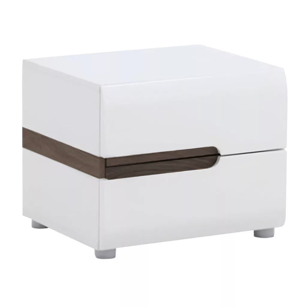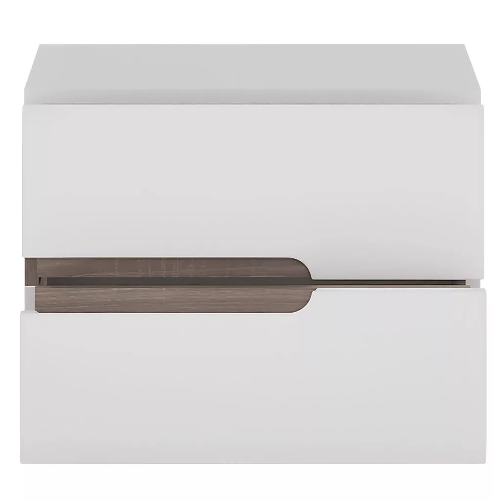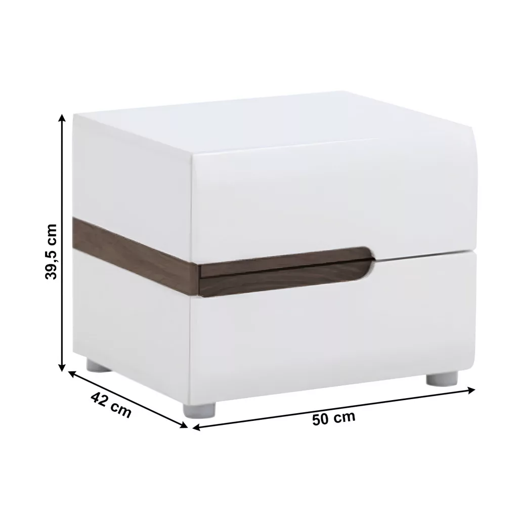A LYNATET 95 éjjeli asztal pontosan ezt a kettős célt szolgálja. Ez a német design alapján készült, falra is szerelhető hálószobai kisasztal a luxus és a stílus érzetét hozza el otthonodba. Az extra magas fényű fehér ajtófrontok és az elegáns sonoma tölgy trufla színkombináció kifinomult megjelenést kölcsönöz a térnek, míg a két tágas fiók diszkrét tárolási lehetőséget kínál mindannak, amit nem szeretnél szem előtt hagyni.