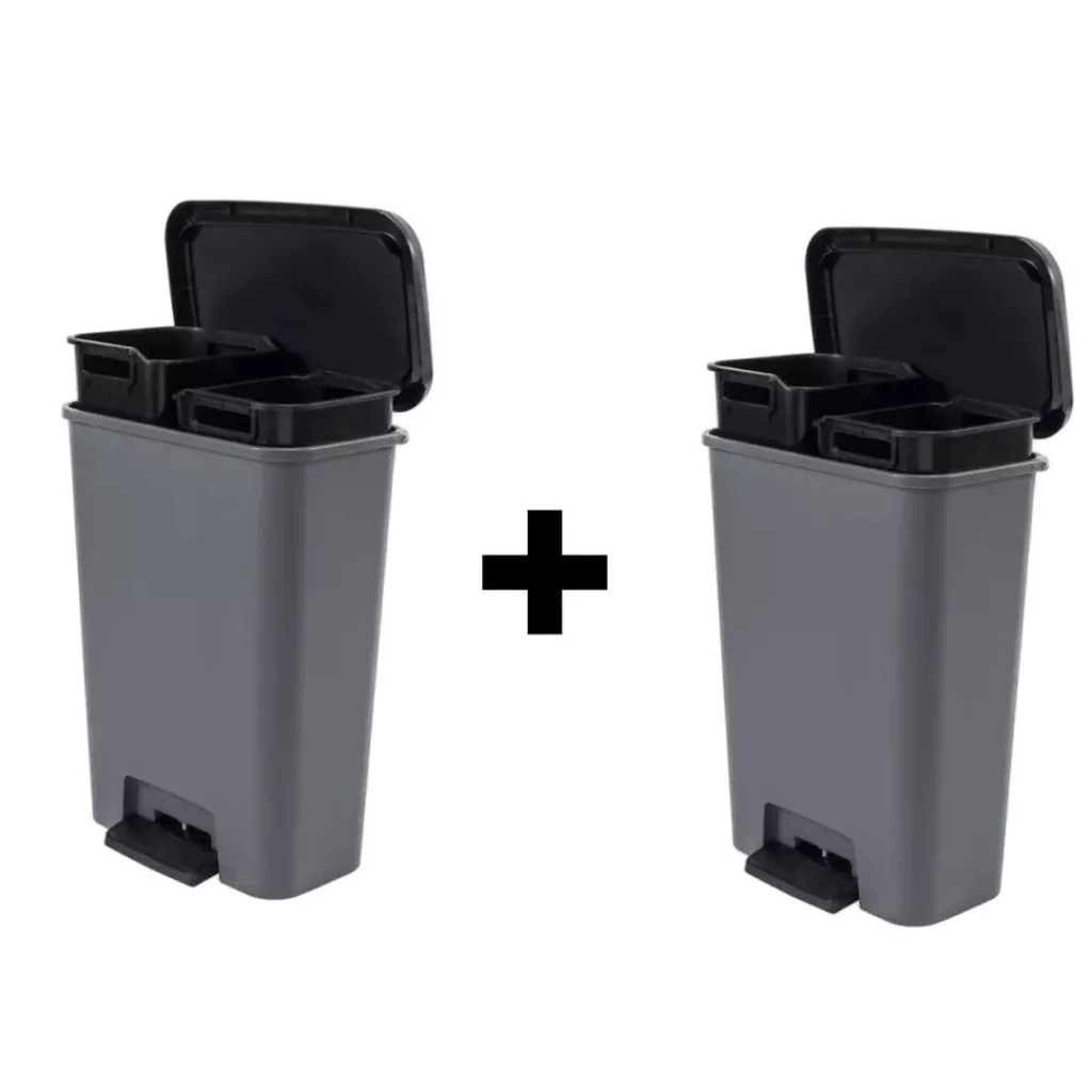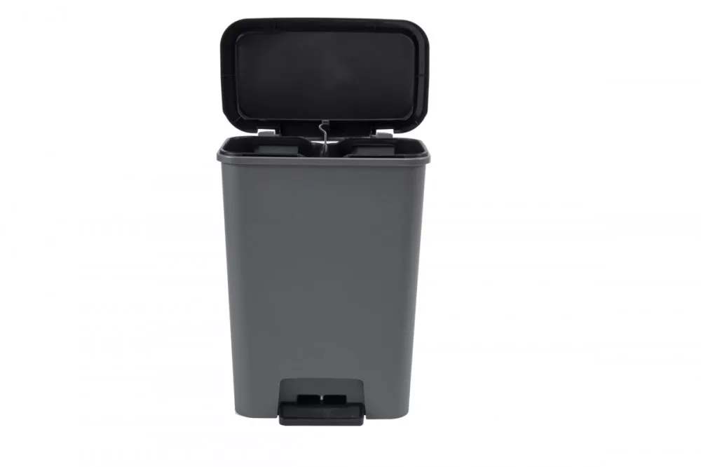 Duo pedálos szemetes 50L 23+23L, fekete-szürke