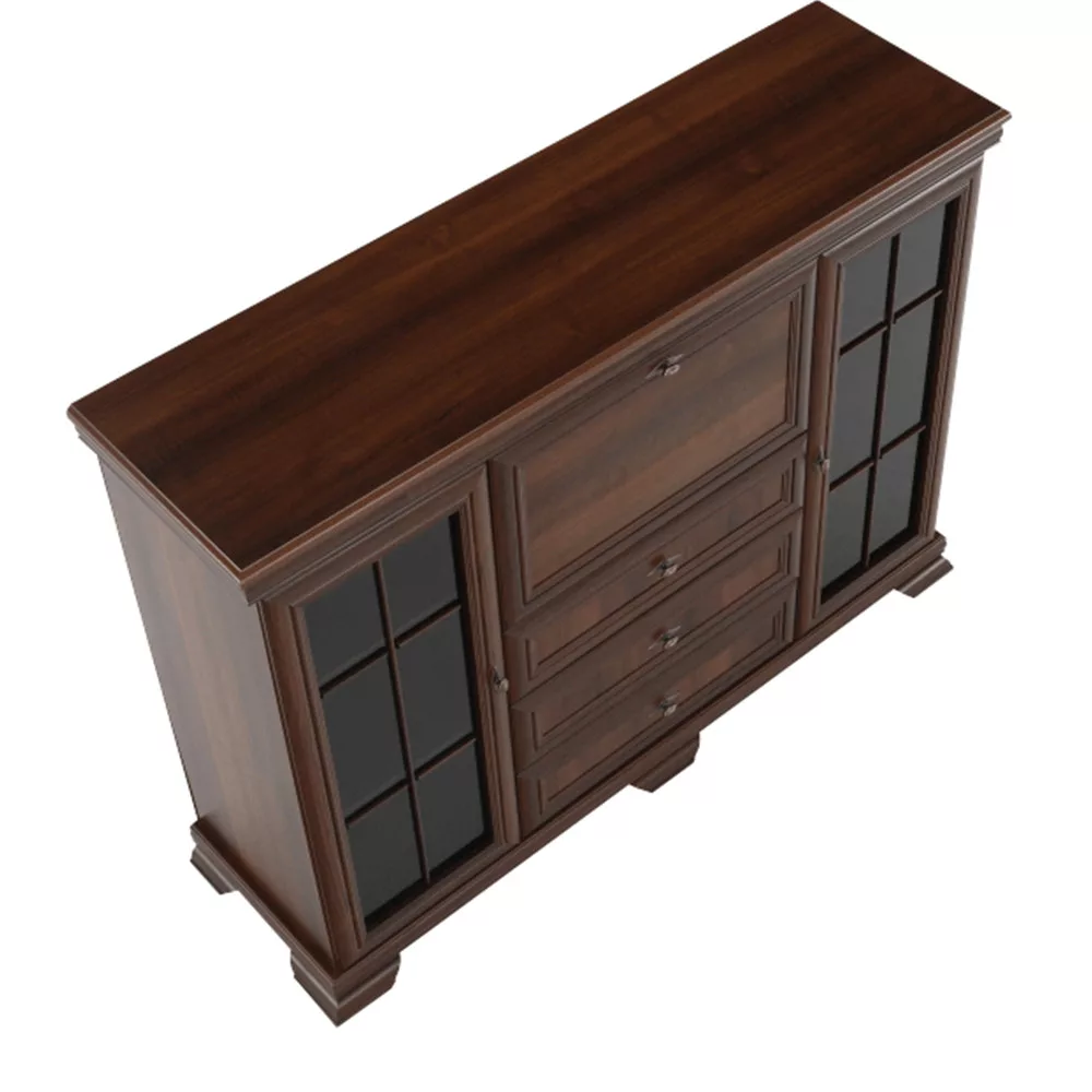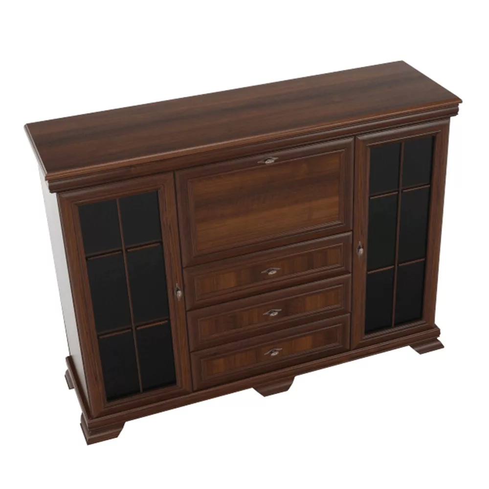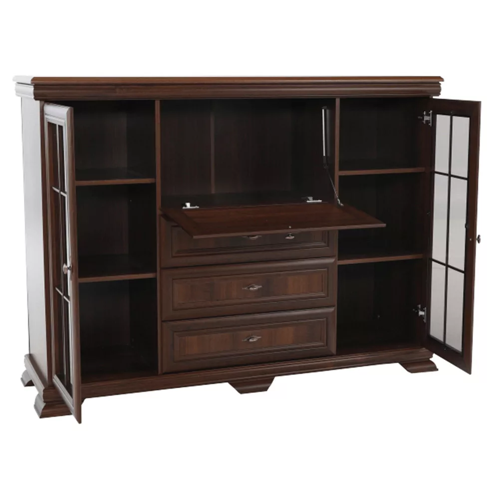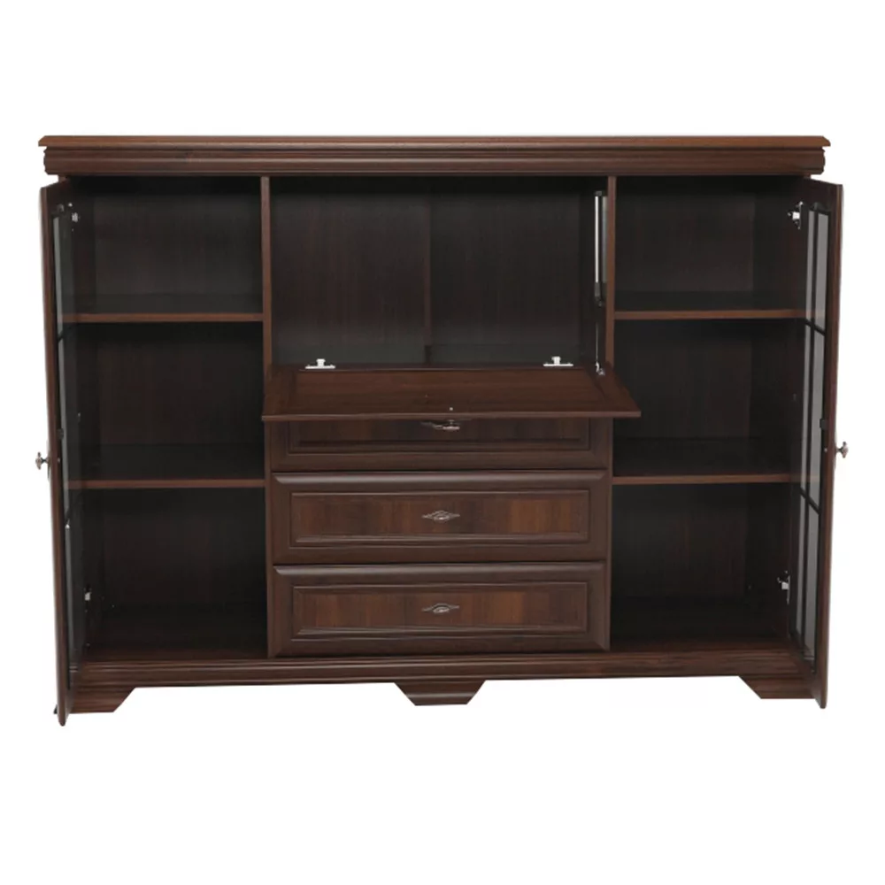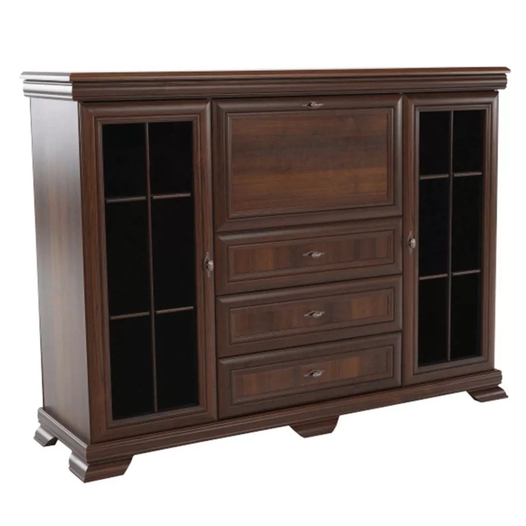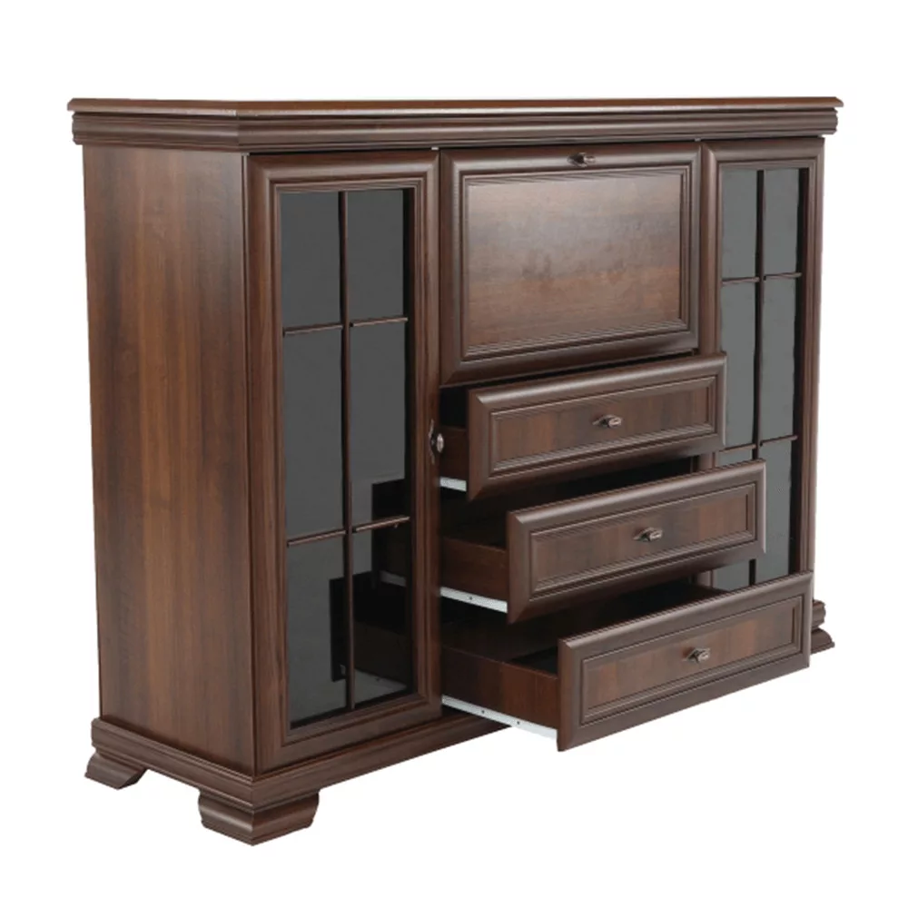 - Kialakítás: Három fiók, két vitrinszekrény, egy bárszekrény
